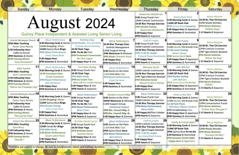 Quincy Place Senior Living is located in Holland, Michigan. We offer Independent Living, Assisted Living, and Memory Care in our senior retirement community. Nursing care and support, along with gracious amenities and lifestyle options are provided to our residents. We are an active adult community, within the Traditions Management family, that can help seniors with aging, Alzheimer’s, and Dementia care.