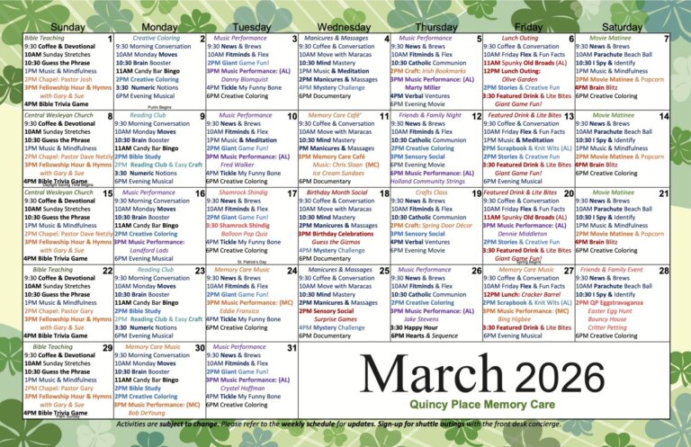Don’t miss these fun activities all month long at Quincy Place Senior Living!