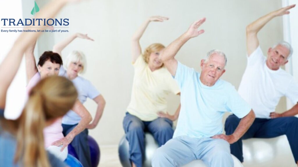 Exercise has been linked to lowering the risk of various cardiovascular diseases, stroke, diabetes, various types of cancer as well as improving overall mental health and function. Physical activity can mean something different for each individual but should include cardiovascular exercise, strength training and balance training each week. Traditions offers many ways for residents to participate in individualized exercise training or group exercise training which can offer benefits such as socialization and encouragement from peers!