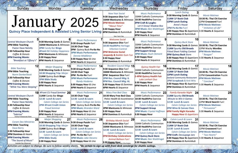 Quincy Place Senior Living is located in Holland, Michigan. We offer Independent Living, Assisted Living, and Memory Care in our senior retirement community. Nursing care and support, along with gracious amenities and lifestyle options are provided to our residents. We are an active adult community, within the Traditions Management family, that can help seniors with aging, Alzheimer’s, and Dementia care.