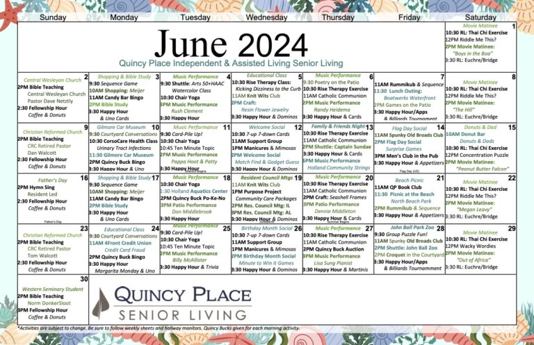 Quincy Place Senior Living is located in Holland, Michigan. We offer Independent Living, Assisted Living, and Memory Care in our senior retirement community. Nursing care and support, along with gracious amenities and lifestyle options are provided to our residents. We are an active adult community, within the Traditions Management family, that can help seniors with aging, Alzheimer’s, and Dementia care.